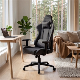 Mukana tulevat tyynyt voidaan sijoittaa tuoliin niin, että saat ergonomisesti täysin oikean istuma-asennon. Selkä- ja niskatyynyn korkeutta voidaan säätää, jotta se tukee juuri sieltä, mistä tarvitset. Tyynyt voidaan tietysti myös ottaa pois.