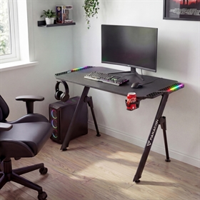 ​ Vaikka pöytä on vain 100 cm leveä, se on fiksusti suunniteltu ja varustettu mukitelineellä ja kuulokepidikkeellä sekä sisäänrakennetulla kaapelipiilolla, jotta voit piilottaa johdot siististi pois näkyviltä. Näiden ominaisuuksien ansiosta sinulla on paljon tilaa pöydällä, ja sitä myöten myös sinulla on runsaasti tilaa suurille hiiren liikkeille. Yksi iso etu on myös se, että kaikki tarvitsemasi on lähelläsi. Lisäksi pöytä näyttää todella upealta hiilikuitupintoineen ja vakauttavine jalkoineen.
