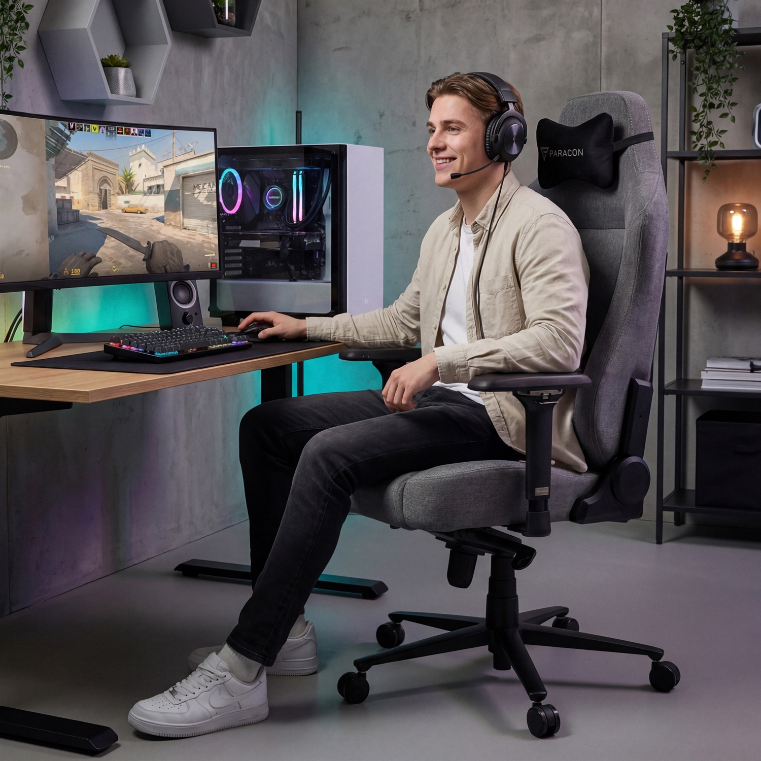 Paracon KNIGHT Pro Pelituoli - Tekstiili - Harmaa